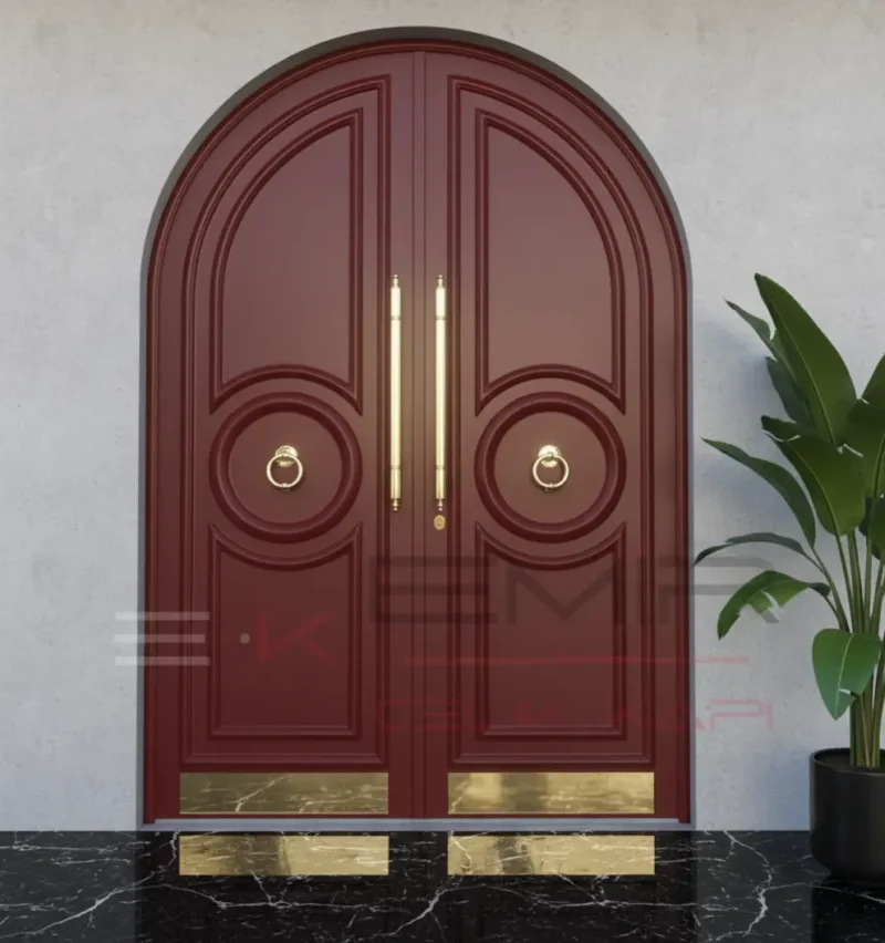 Dış mekanlara yönelik kapılar tasarlarken, estetiğin güvenlik kadar önemli olduğunun bilincindeyiz. Kubbeli Villa Kapısı modelimiz, mimari projenize sofistike bir dokunuş katmak üzere özel olarak geliştirilmiştir. Bu model, özellikle lüks villa kapısı arayışında olanların beklentilerini fazlasıyla karşılar.