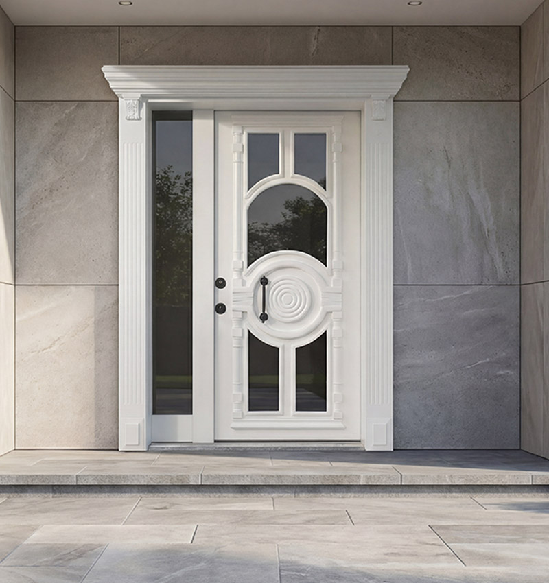- Saçak Altı Korunaklı Girişler: Kapının estetik ömrünü en üst düzeye çıkarmak için tasarlanan bu model, yarı korunaklı ve geniş saçak altı bulunan alanlarda yıllarca ilk günkü zarafetini korur. Bu, malzemenin doğal yapısını korumak için bir mühendislik tercihidir.