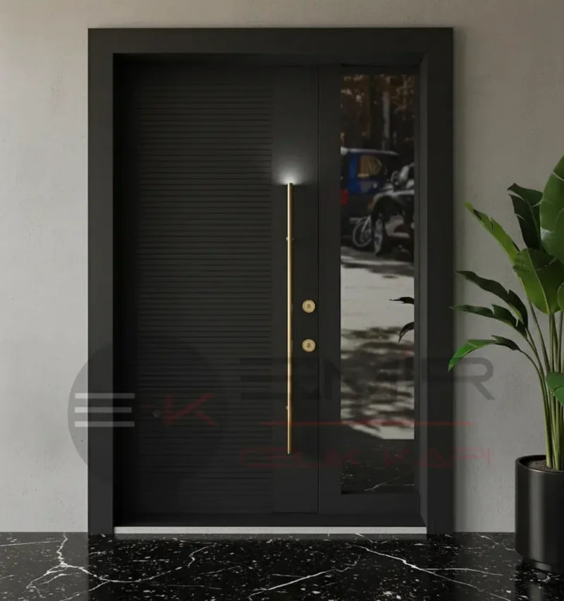 Modern villa kapısı trendlerinin öncüsü olan Emir Çelik Kapı, bu modelde minimalist çizgileri ve fonksiyonel tasarımı bir araya getiriyor. Villanızın dış cephesiyle kusursuz bir uyum yakalayacak bu tasarım, mimari projenizin kimliğini güçlendirir. İstanbul’daki villa projelerinizde veya Ankara, İzmir gibi şehirlerdeki lüks konutlarınızda dahi fark yaratacak bir seçenektir.