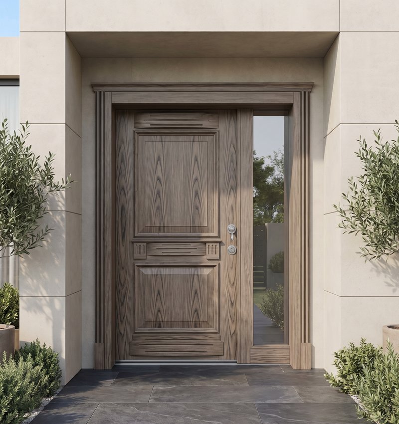 Temel fark malzemede yatar. Ahşap kapılar, Tebriz modelinde olduğu gibi doğal ağaç kaplamadan üretilir ve otantik, benzersiz bir doku sunar. Kompozit kapılar ise ahşap talaşı ve polimerlerin birleşiminden oluşan mühendislik ürünleridir; daha çok endüstriyel bir görünüm sunarlar. Ahşap kapılar doğru koruma ile eşsiz bir estetik sunarken, kompozit kapılar doğrudan dış etkenlere maruz kalacak alanlar için daha bakım gerektirmeyen bir alternatif olabilir. Seçim, estetik öncelik ve montaj alanının koşullarına bağlıdır.