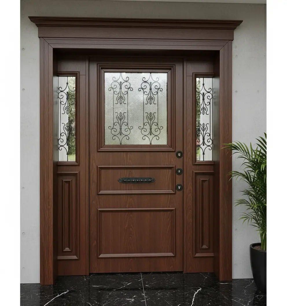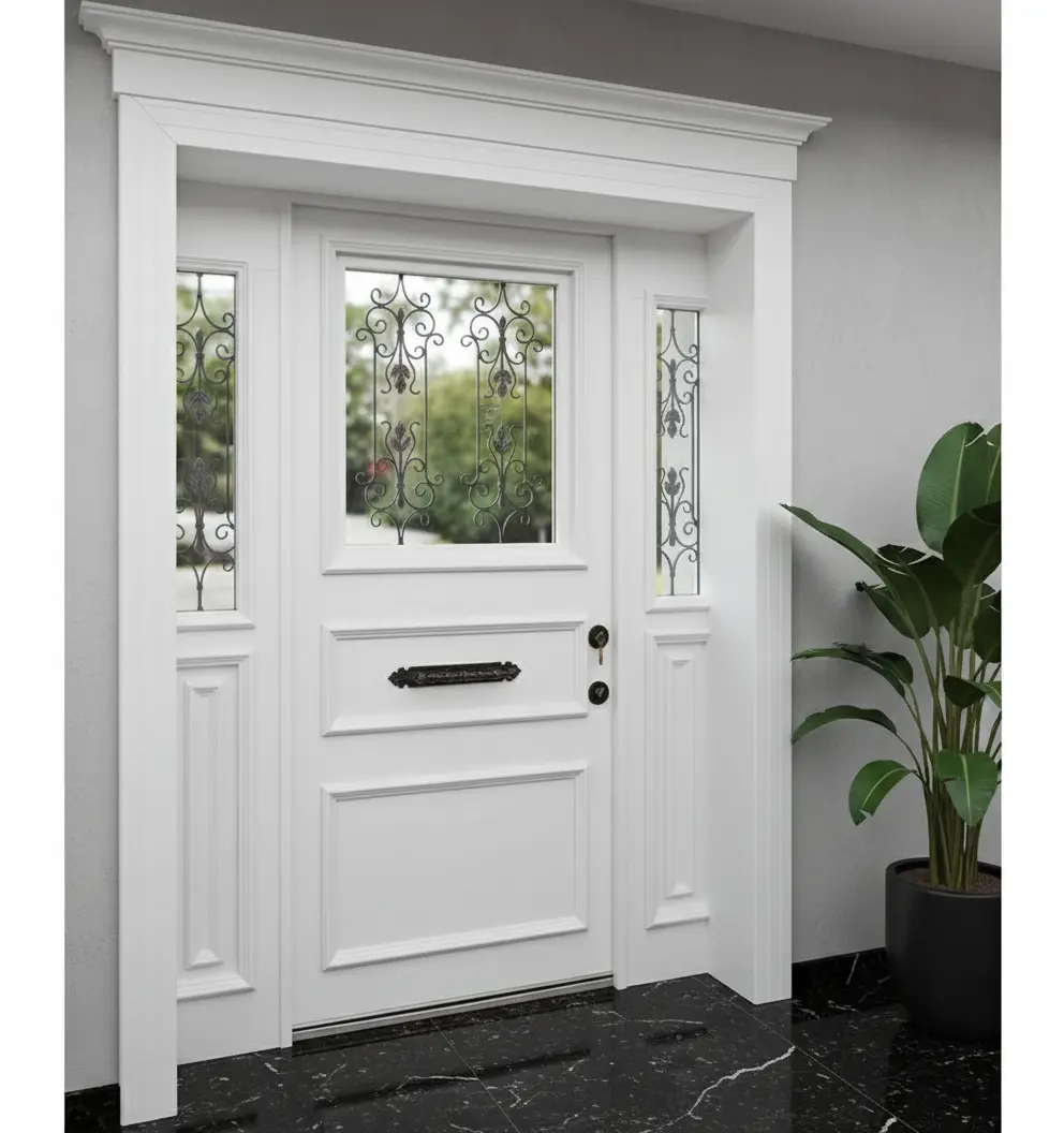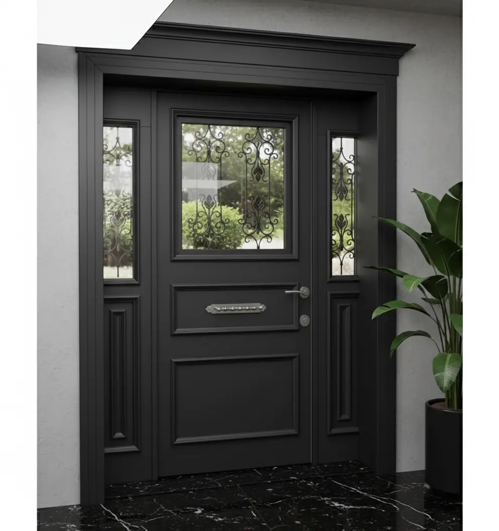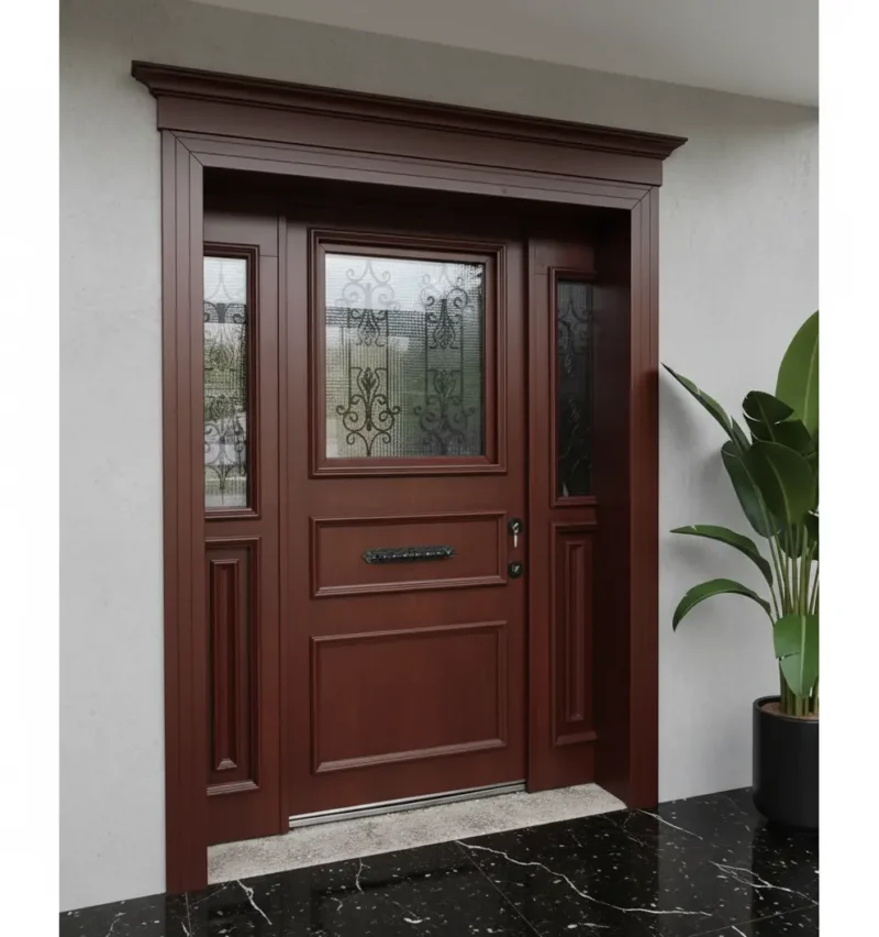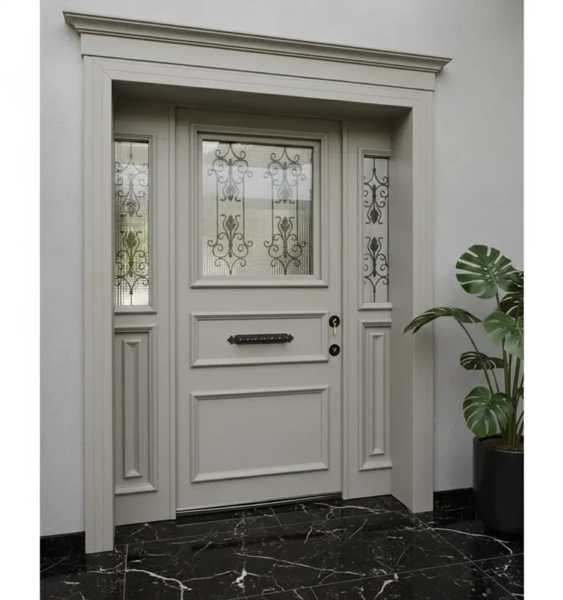 Villa Kapısı 549’un rengi ve dokusu, modern villaların minimalist çizgileriyle mükemmel bir uyum içindedir. Geniş yan panelleri ve ışık alan tasarımı sayesinde evinizin girişine doğal bir aydınlık katarken, lüks villa kapısı algısını güçlendirir. Bu, sadece bir kapı değil, yaşam alanınızın karakteristik bir uzantısıdır.