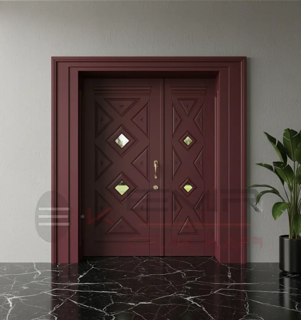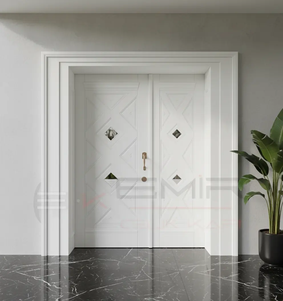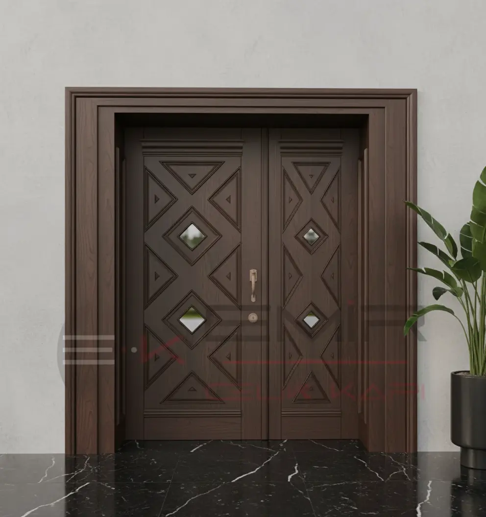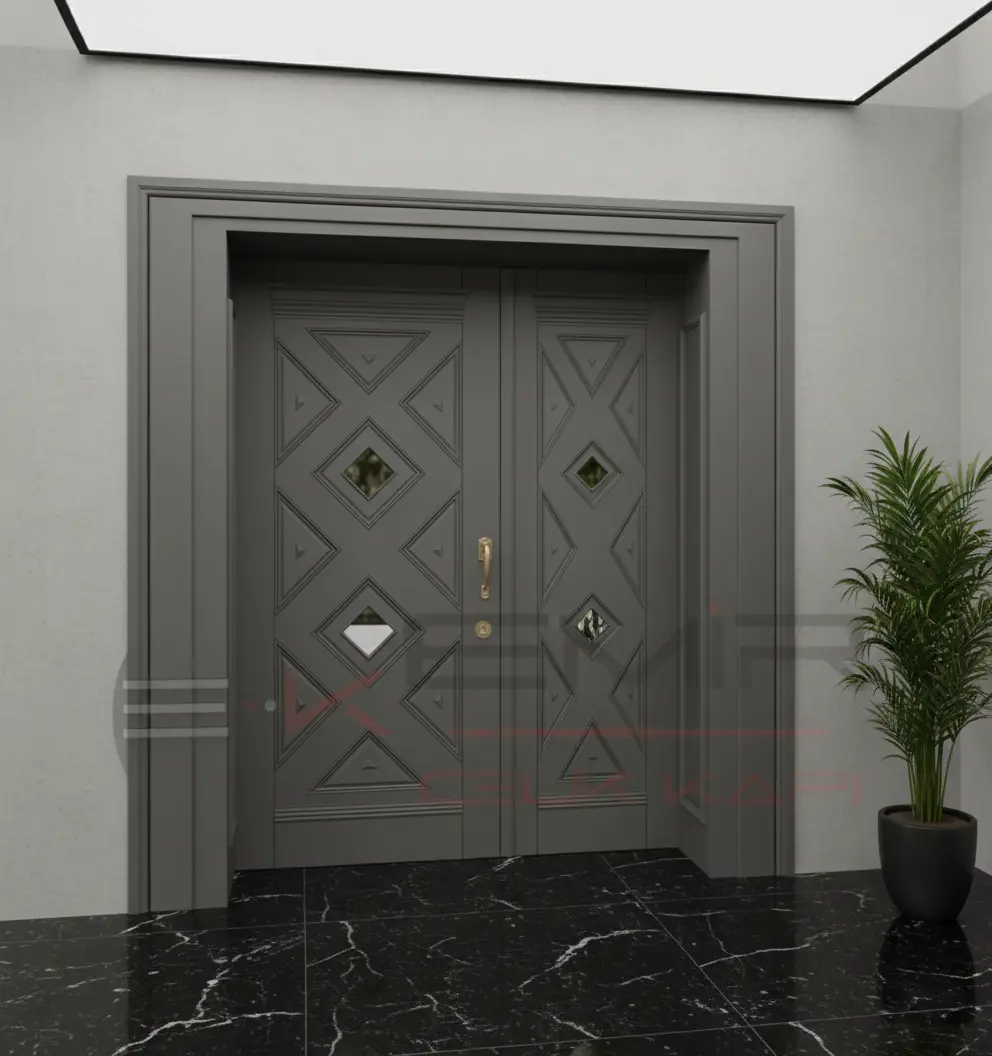 Görselde gördüğünüz estetik detaylar, sadece bir görünümden ibaret değil; her bir detay, kapınızın karakterini ve dayanıklılığını pekiştiriyor. Kapının tasarımındaki denge, klasik mimarinin zamansız güzelliğini çağdaş çizgilerle harmanlayarak, yıllarca bıkmadan bakacağınız bir estetik sunar.