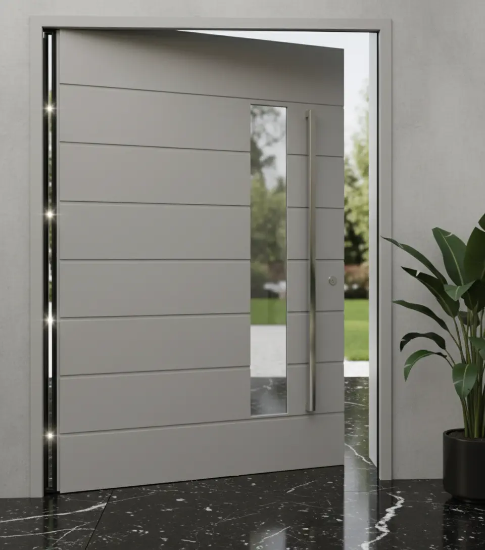 Büyük ve görkemli girişler için ideal seçenekler sunar. Bu kapılar, menteşe yerine pivot sistemi ile açıldığından geniş açıklıklara uyum sağlar. 2025 Pivot Kapı Modelleri, modern mimarinin vazgeçilmez bir parçası olarak hem estetik hem de işlevsellik açısından mükemmel bir çözüm sunmaktadır.