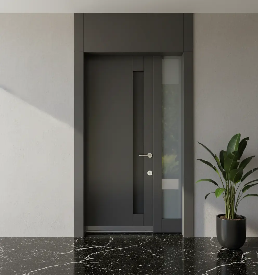 Mimari projenize özel ölçü imkanı sunarak, kapınızın villanızın genel estetiğiyle mükemmel bir uyum yakalamasını sağlıyoruz. Kapı kolu seçiminden cam detaylarına, dış yüzey dokusundan renk paletine kadar her ayrıntıyı sizinle birlikte belirliyoruz. Bu sayede, sadece bir kapı değil, adeta bir sanat eseri yaratıyoruz.