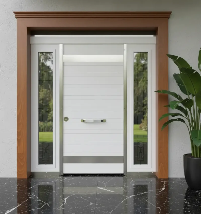 Estetik ve dayanıklılığı bir arada sunan bu kapılar, villa sahipleri için çekici bir seçenek olmaya devam ediyor. Kompakt laminat kaplamalarla güçlendirilmiş olan bu kapılar, çizilmelere ve darbelere karşı son derece dayanıklıdır. Kompakt Villa Kapısı Modelleri, ahşap, mermer ve taş görünümlü desenlerle sunularak doğal bir görünüm arayanlar için mükemmel bir tercih sunmaktadır.