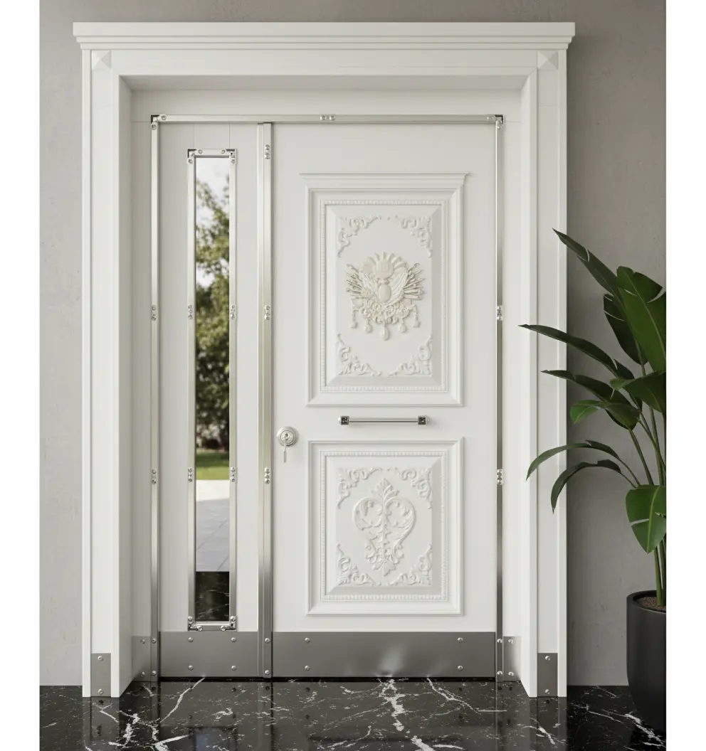 TSE belgeli monoblok sağlam çelik gövde yapımız, kapıyı içeriden ve dışarıdan gelebilecek tüm darbelere karşı zırh gibi korur. Bu, sadece bir çelik villa kapısı değil, aynı zamanda bir güvenlik kalesidir. Türkiye’nin en güvenilir çelik kapı firması olarak, kapılarınızda Avrupa standartlarında güvenlik sağlıyoruz.