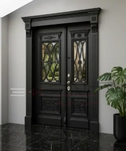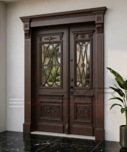 Ahşap kaplama villa kapısı modelleri kompozit ve kompak lamine ürünlerin aksine daha gösterişli kabartmalı modellerin yer aldığı ürünlerin yer aldığı ürün grubumuzdur. Ahşap kaplama villa giriş kapısı modelleri gösterişli zarif klasik mobilya tasarımlarına yer verilen çelik dış kapı modelleridir. Kapıların iç aksamı tüm ürün gruplarında aynı olmakla beraber ahşap kaplama villa kapısı modelleri yağmur ve güneşe kompozit ve kompakt lamine kaplama çelik villa kapıları kadar dayanımlı değildir, fakat doğal ahşabın kendine has dokusu ve eşsiz desenleri sayesinde sanat eseri kıvamında doğal ve göz alıcı kapı tasarımları seçenekler arasında muhakkak yer almalıdır.